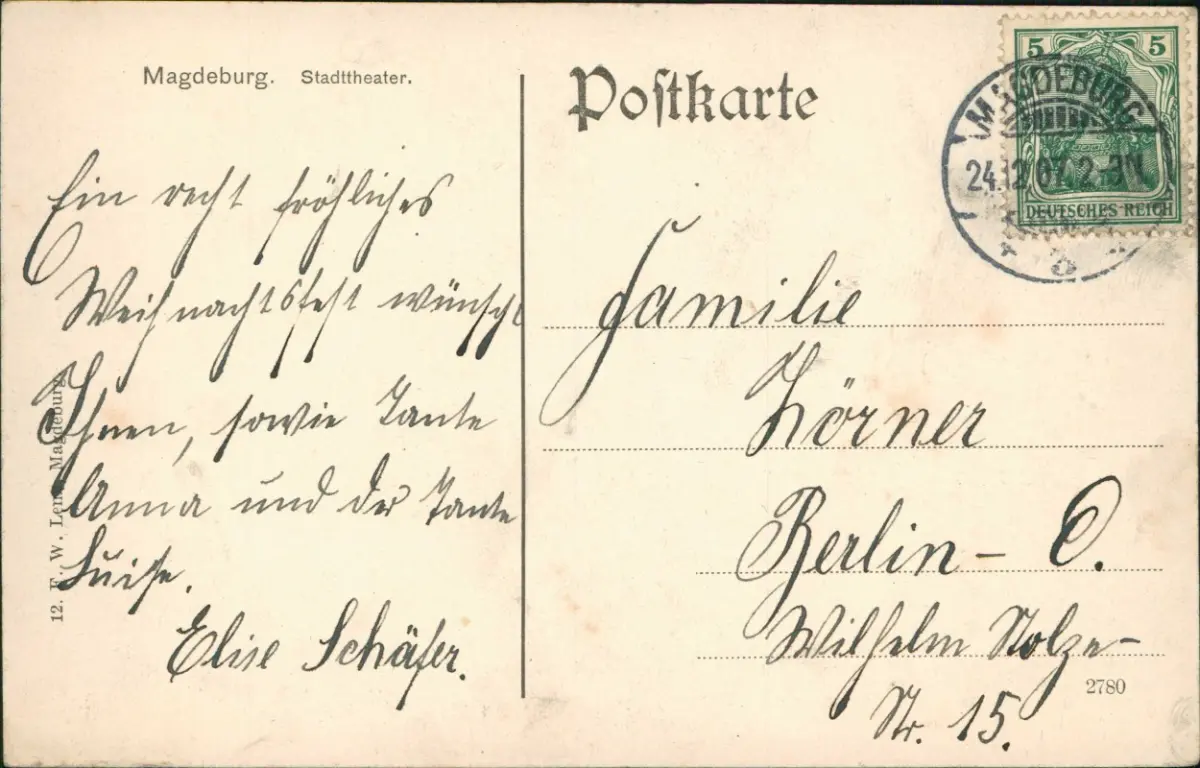 Ansichtskarte Magdeburg Stadttheater, Laterne Seitenansicht 1907