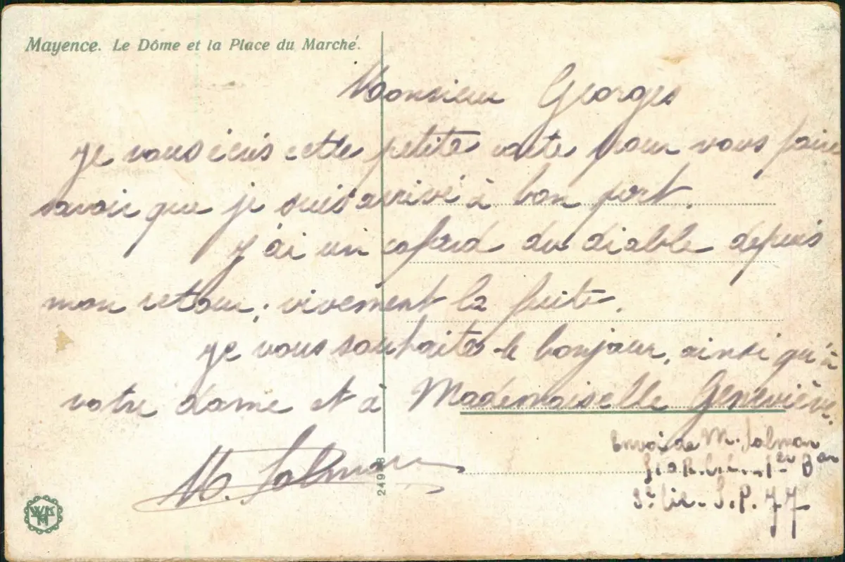 Ansichtskarte Mainz Dom u. Markt. 1918