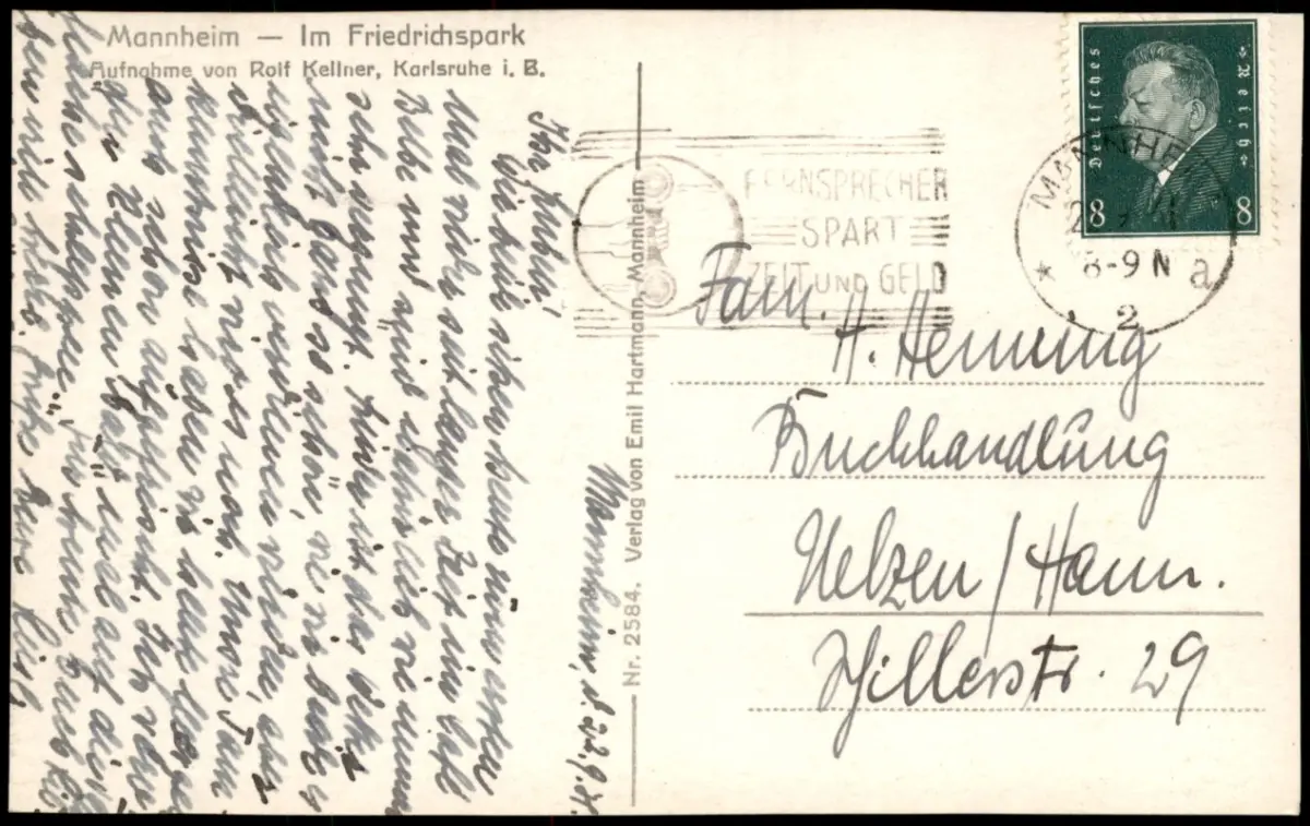 Ansichtskarte Mannheim Friedrichspark Springbrunnen 1931