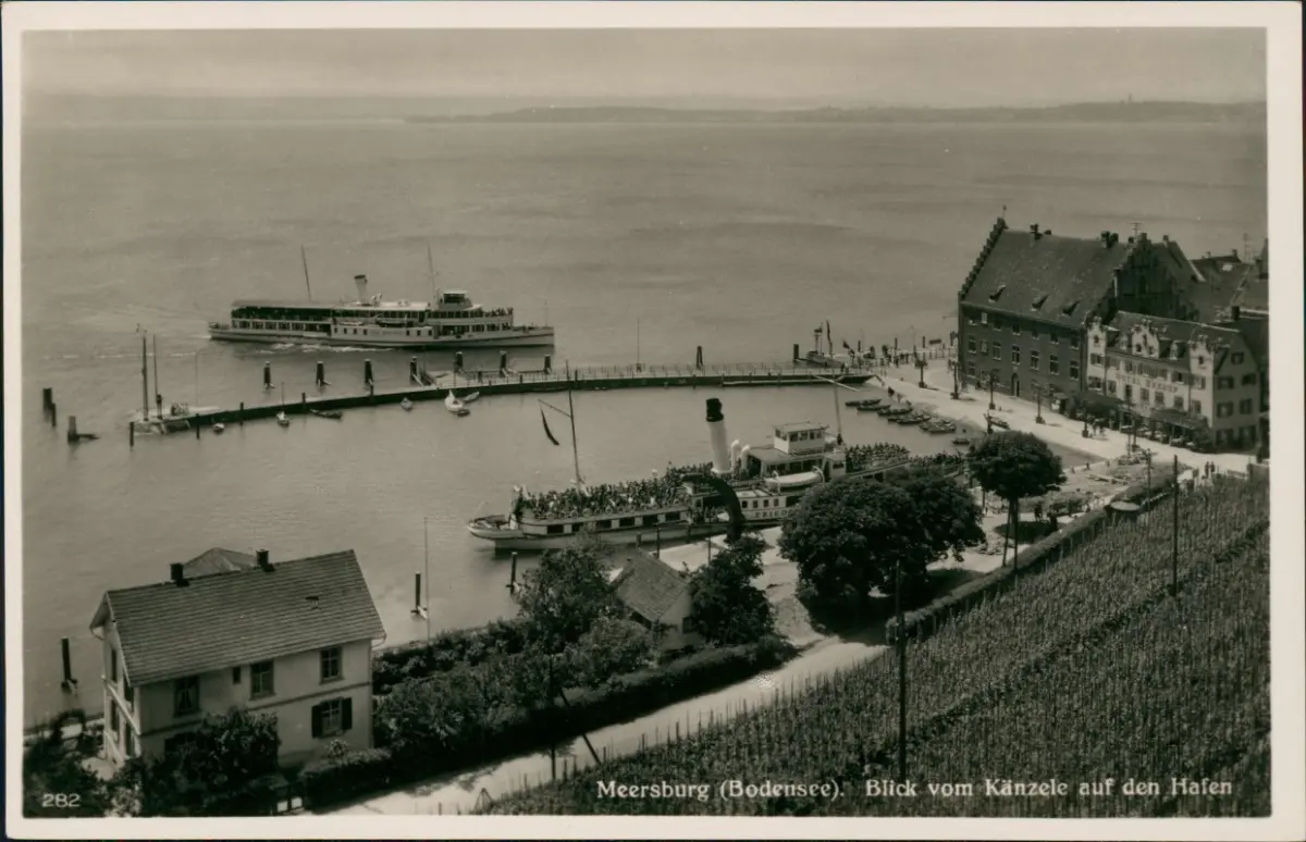 Ansichtskarte Meersburg Panorama Blick vom Känzele auf den Hafen 1930