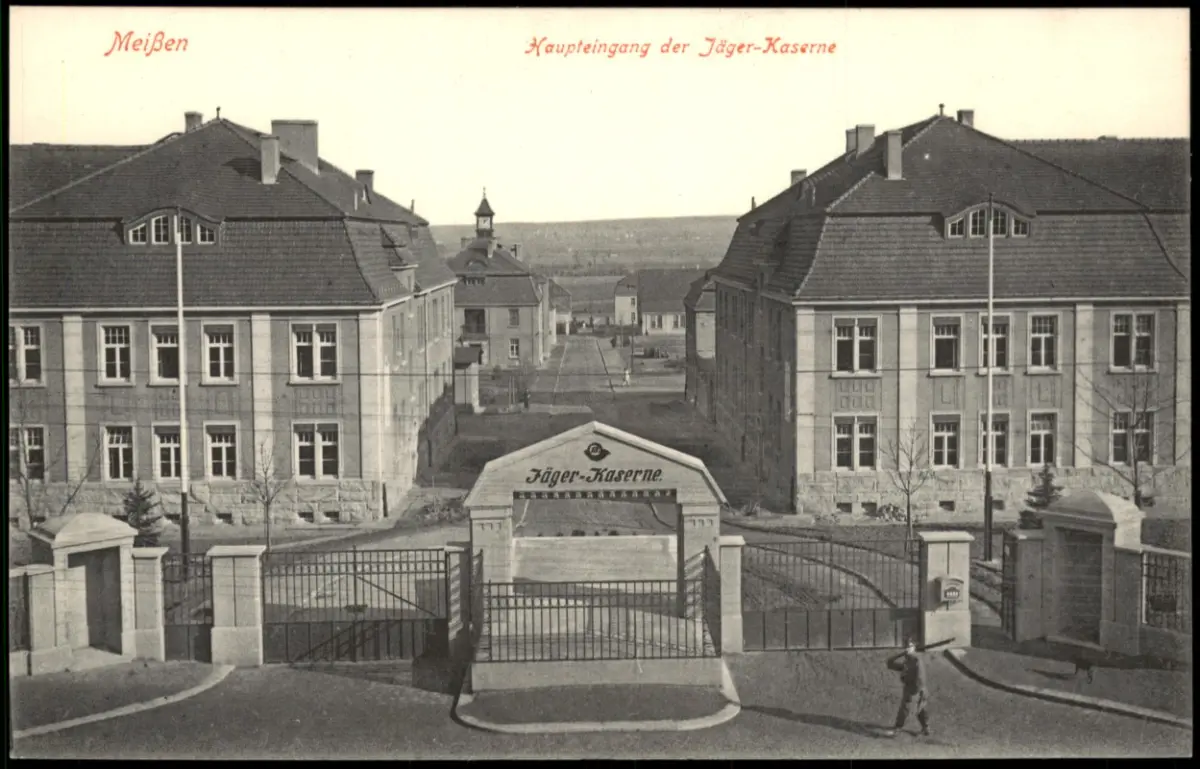Ansichtskarte Meißen Haupteingang der Jäger-Kaserne 1915