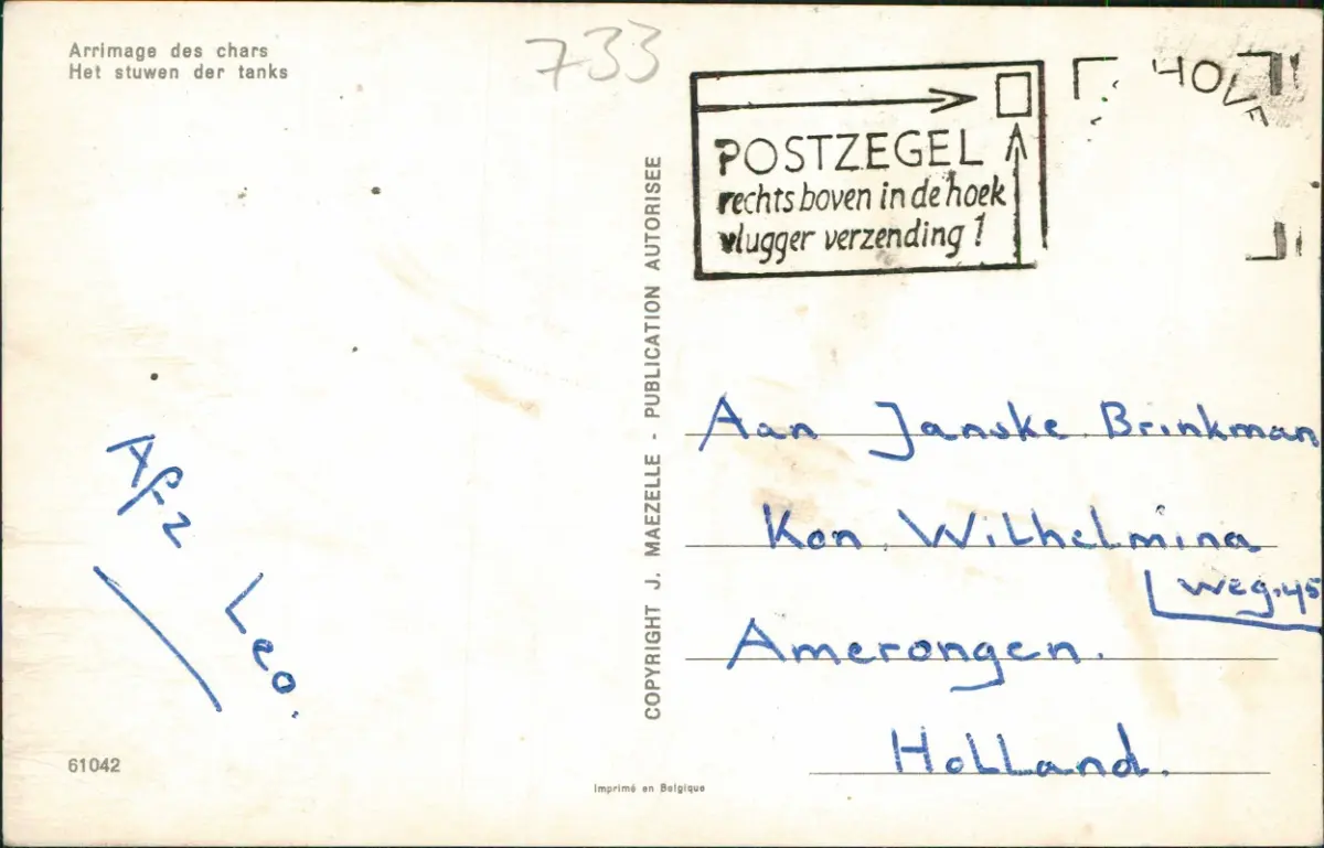 Ansichtskarte Militär Militaria Tank Panzer Soldaten Belgique Belgien 1978