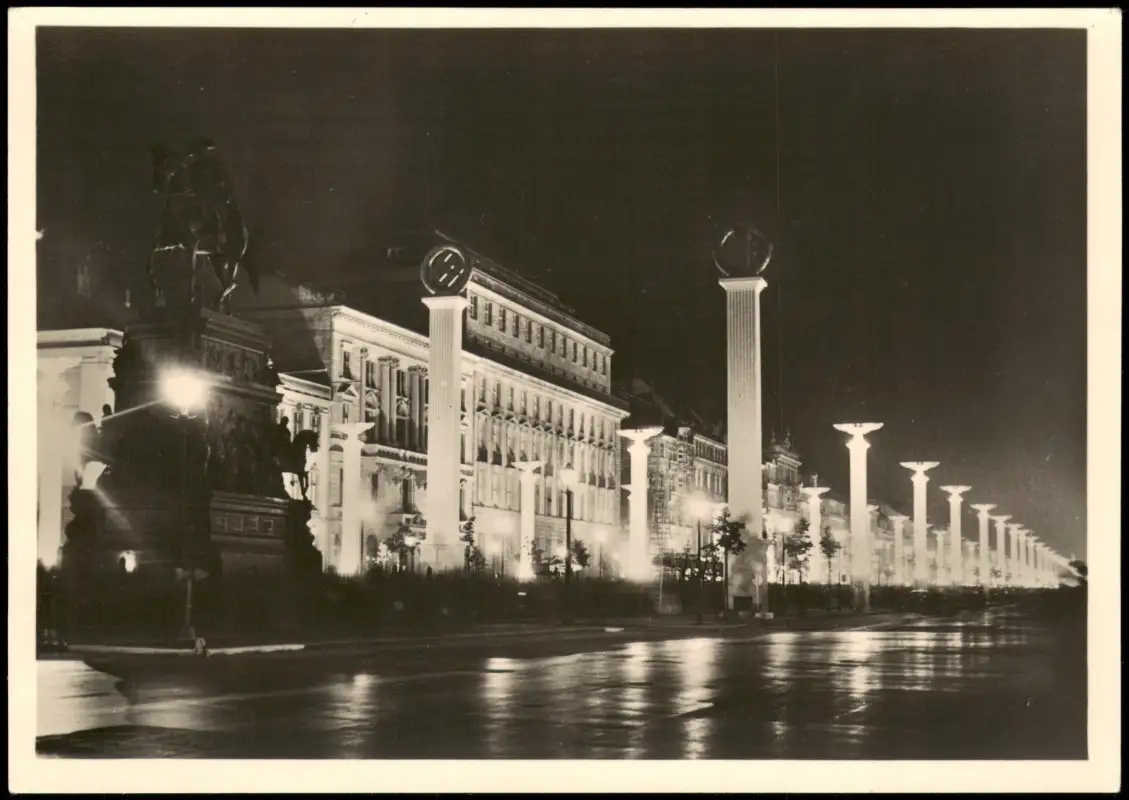 Ansichtskarte Mitte-Berlin Unter den Linden - Propagandaschmuck bei Nacht 1938