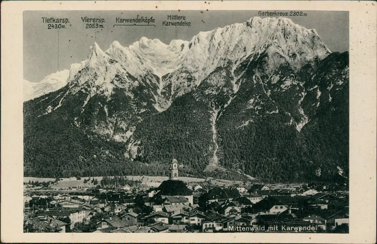 Ansichtskarte Mittenwald Stadtpartie Beschreibung Berggipfel 1929