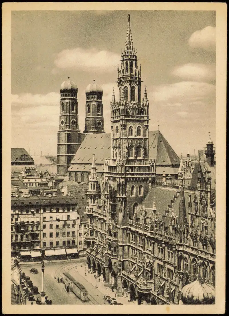 Ansichtskarte München Straßenbahn am Rathaus Frauenkirche 1939