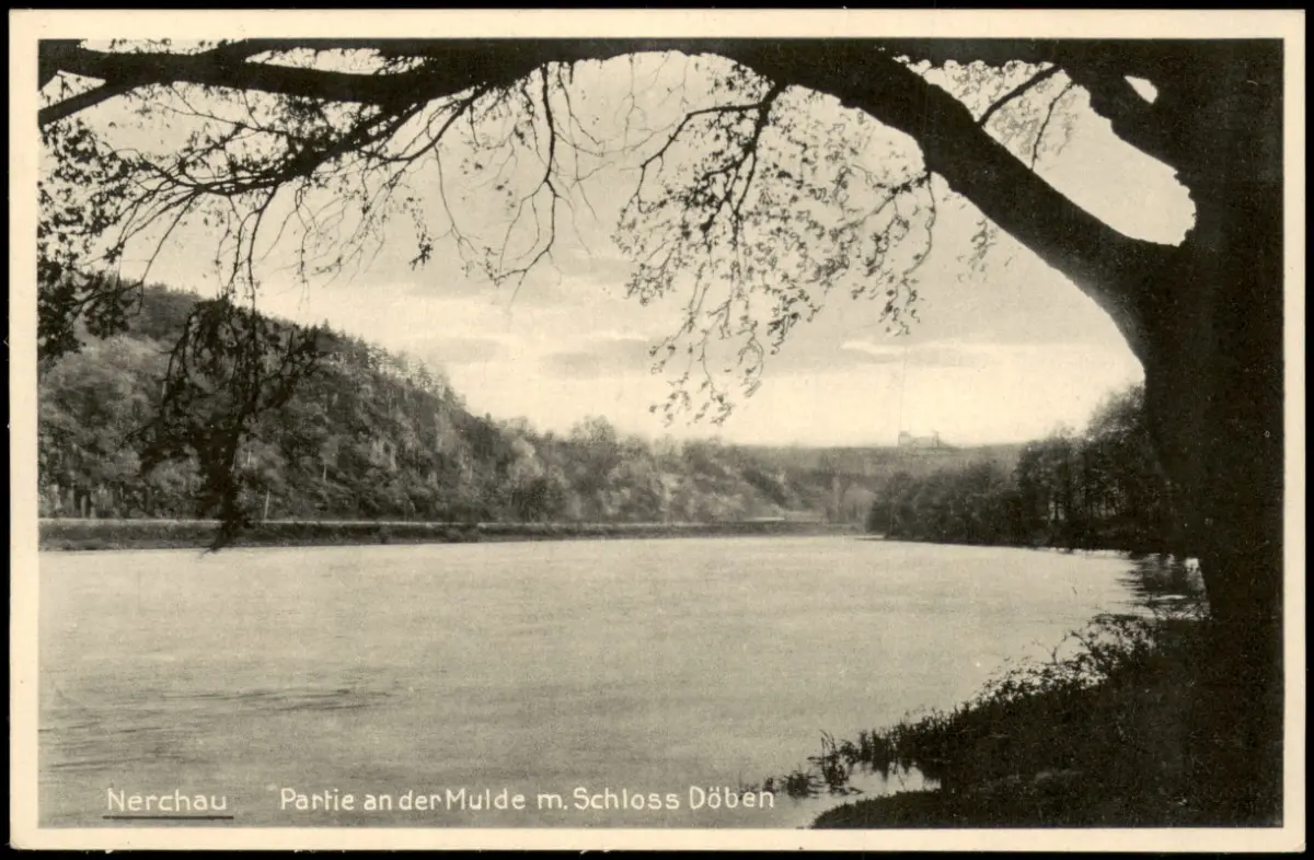Ansichtskarte Nerchau-Grimma Partie an der Mulde mit Schloss Döben 1930