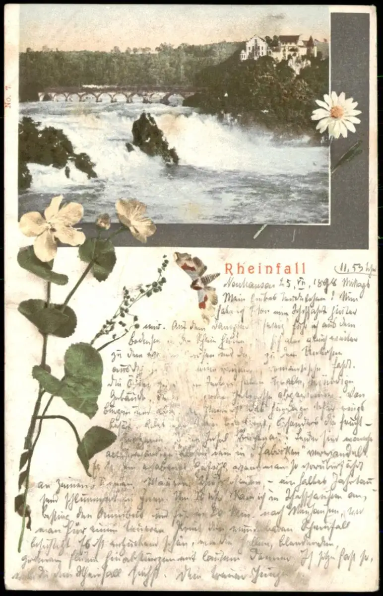 Ansichtskarte Neuhausen am Rheinfall Rheinfall - Blumenornament 1898
