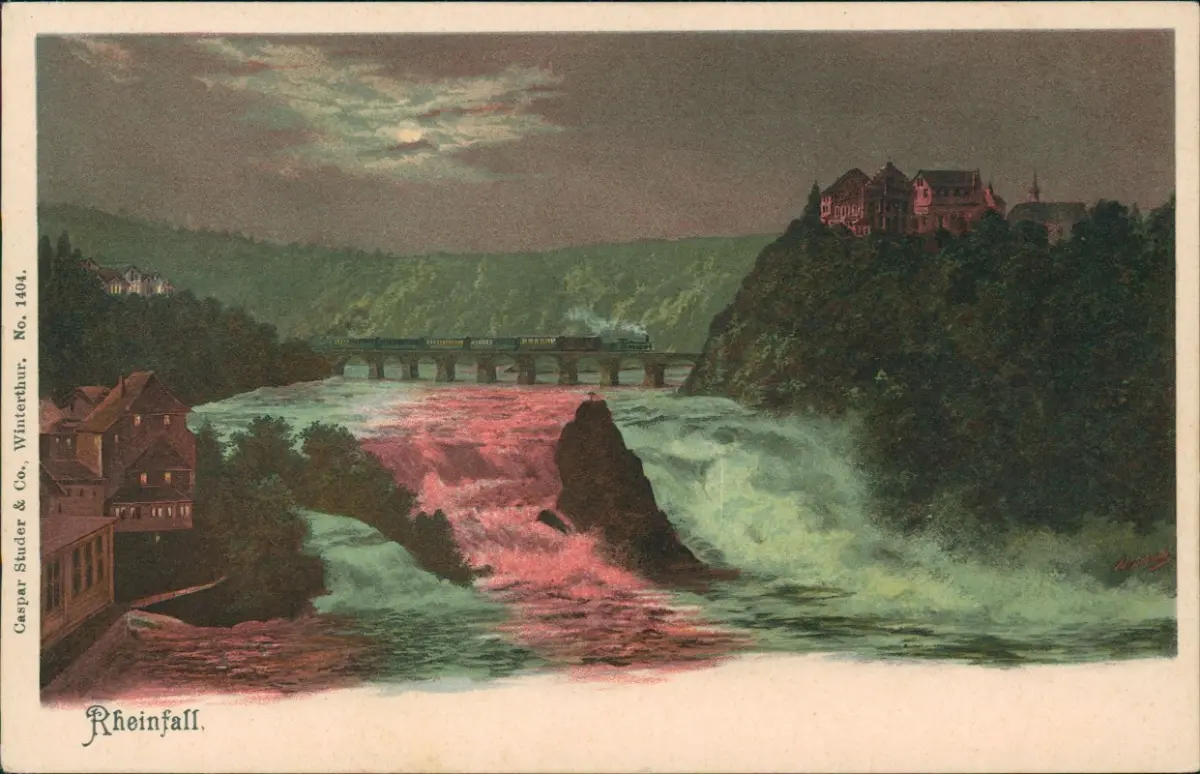 Ansichtskarte Neuhausen am Rheinfall Rheinfall Dampflokomotive bei Nacht 1908