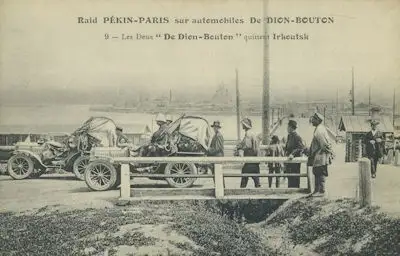 13,5 x 9 cm Les Deux quittent Irkoutsk / sur automobiles De Dion-Bouton Französischer Text Leichte Gebrauchsspuren