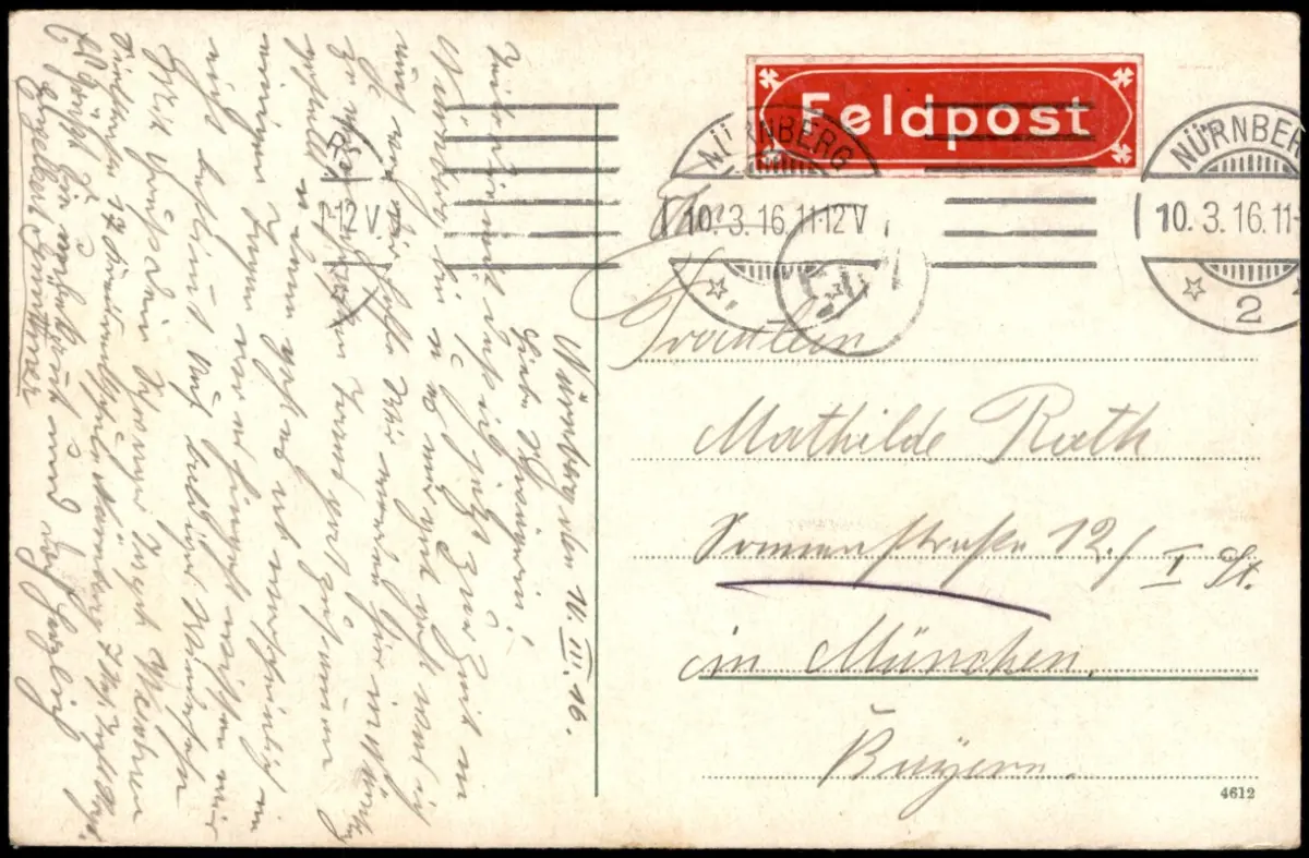 Ansichtskarte Nürnberg Ansicht vom Hallertor aus. 1916 gel. Feldpostvignette