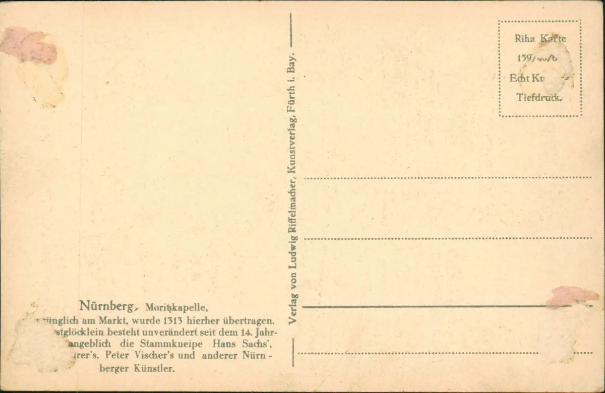Ansichtskarte Nürnberg Moritzkapelle Bratwurstglöcklein 1928