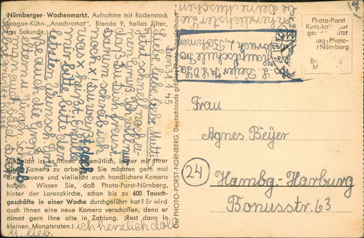 Ansichtskarte Nürnberg Wochenmarkt 1945