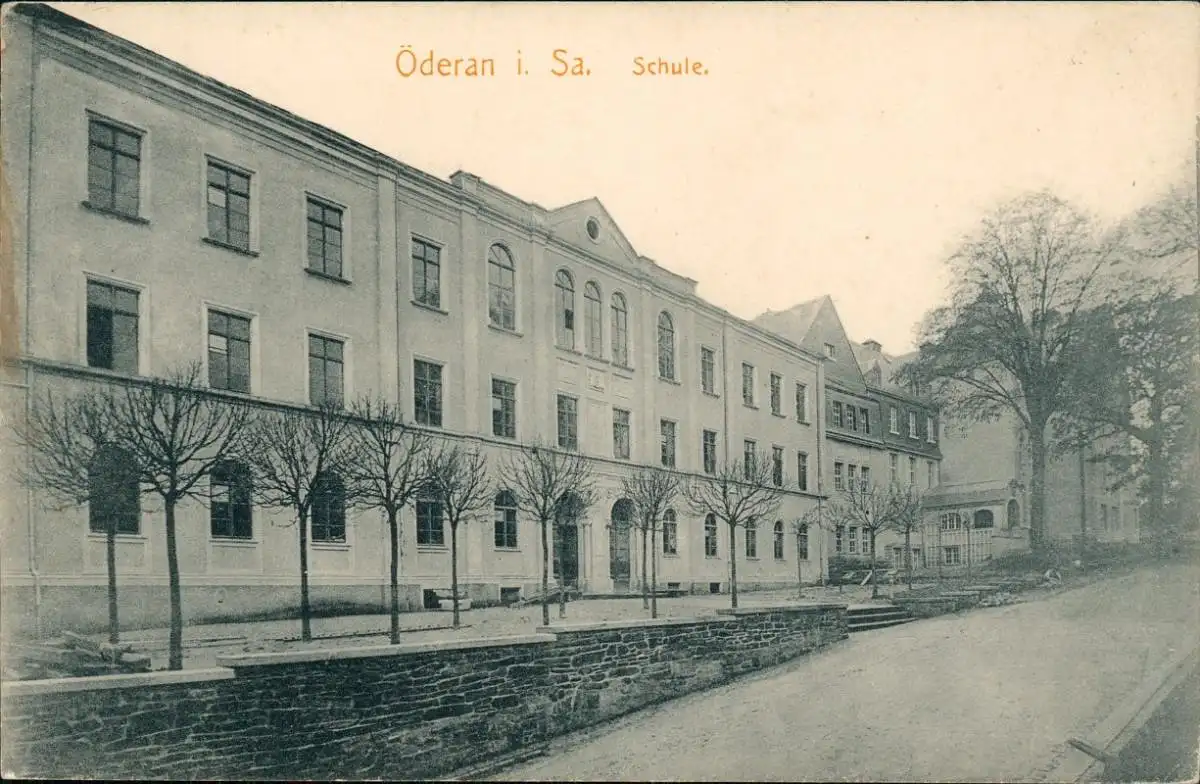 Ansichtskarte Oederan Partie an der Schule 1914