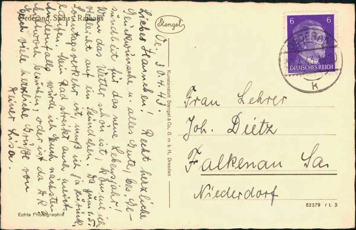 Ansichtskarte Oederan Rathaus mit Ratskeller 1943