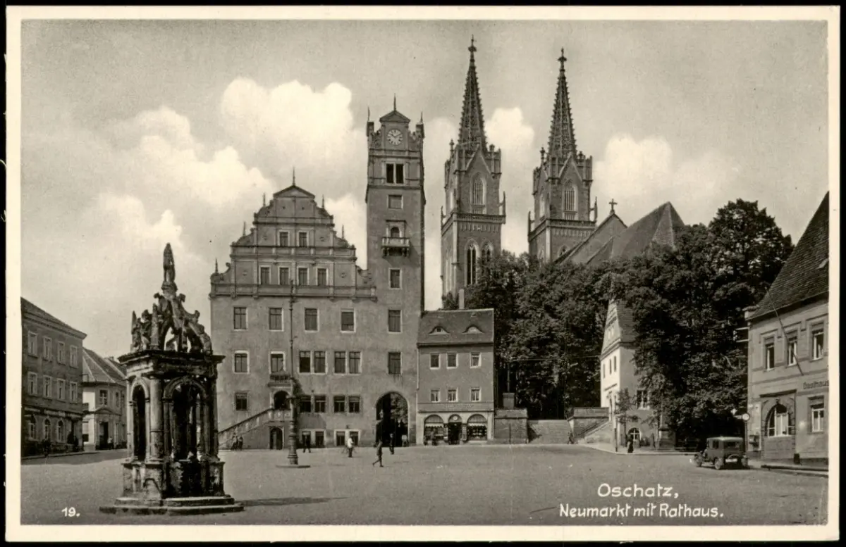 Ansichtskarte Oschatz Neumarkt mit Rathaus 1940