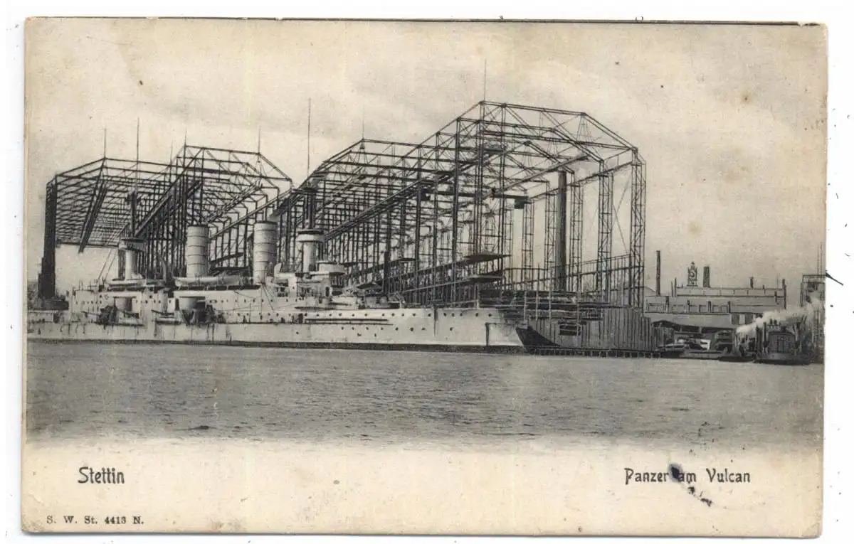 [Ansichtskarte] POMMERN - STETTIN / SZCZECIN, Vulcanwerft, Panzerkreuzer, 1906.