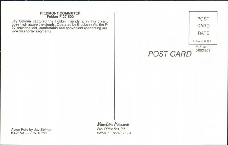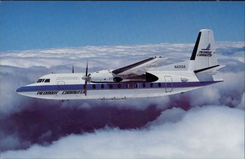 Ansichtskarte Propellerflugzeug PIEDMONT COMMUTER Fokker F-27-600 1990