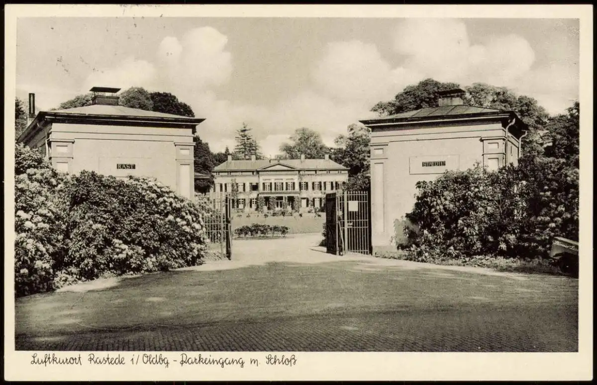 Ansichtskarte Rastede Parkeingang m. Schloß 1956