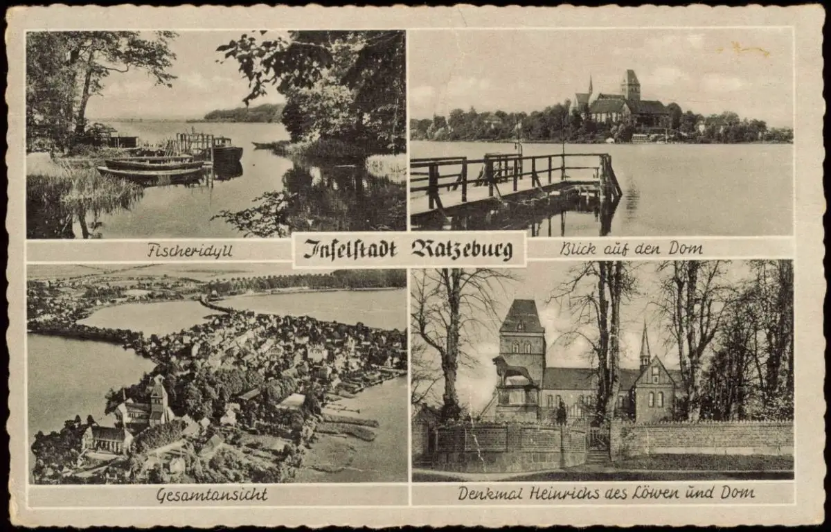 Ansichtskarte Ratzeburg Luftbild, Fischeridyll, Dom 1961