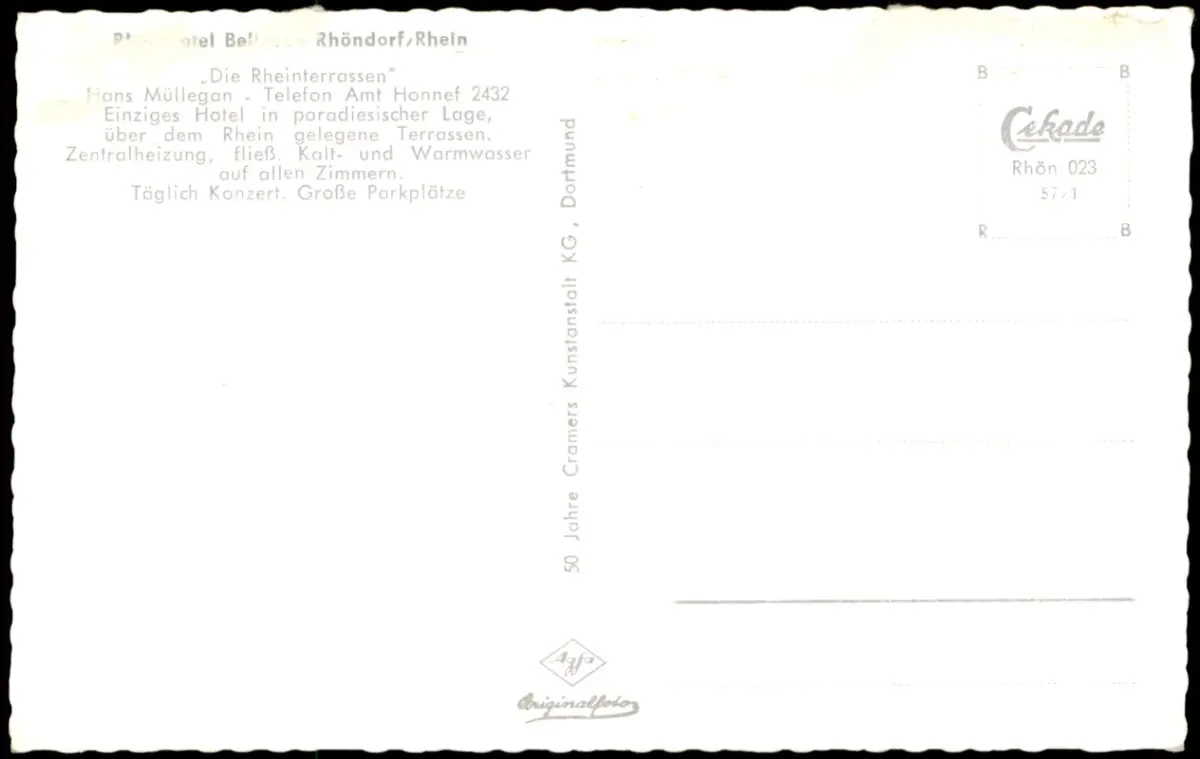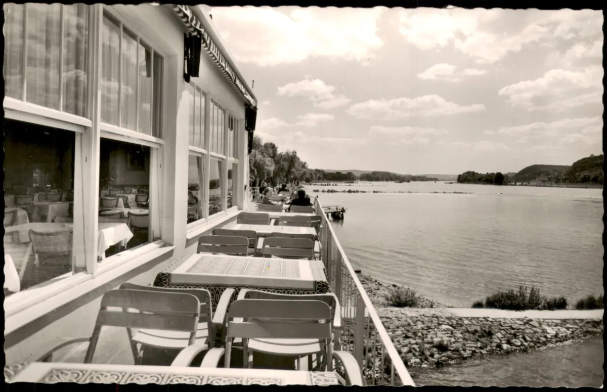Ansichtskarte Rhöndorf-Bad Honnef Hotel, Terrasse Rhein 1957