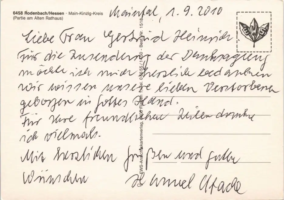 Ansichtskarte Rodenbach Partie am Alten Rathaus 2010/1980
