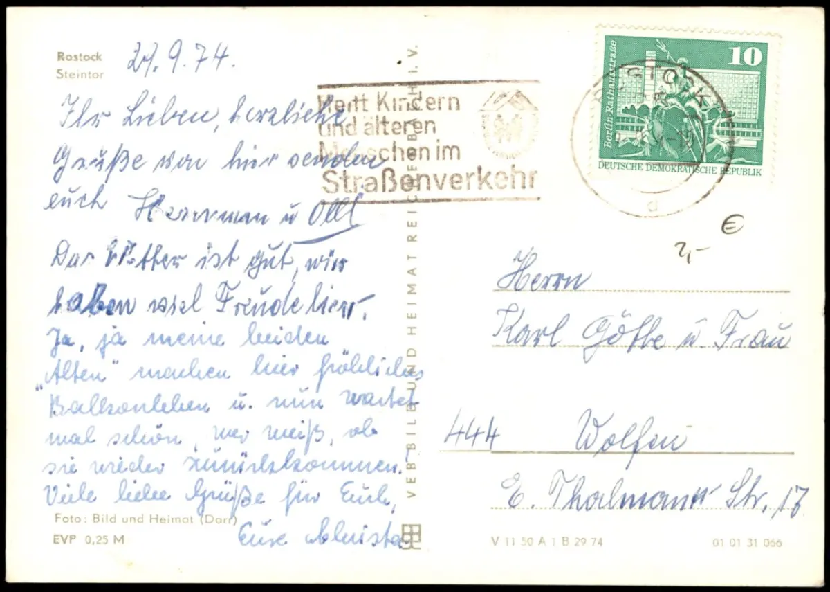 Ansichtskarte Rostock Straßenpartie am Steintor 1966