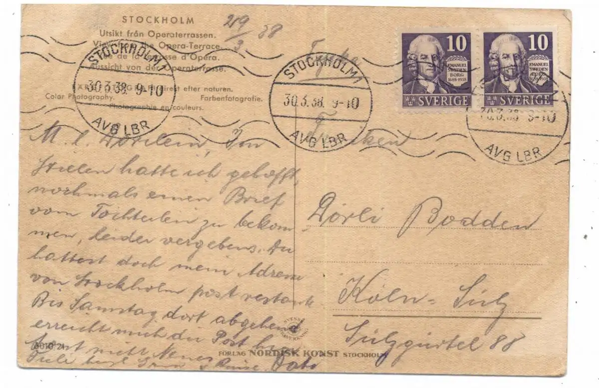 [Ansichtskarte] S 10000 STOCKHOLM, Utsikt fran Operaterrassen, 1938.