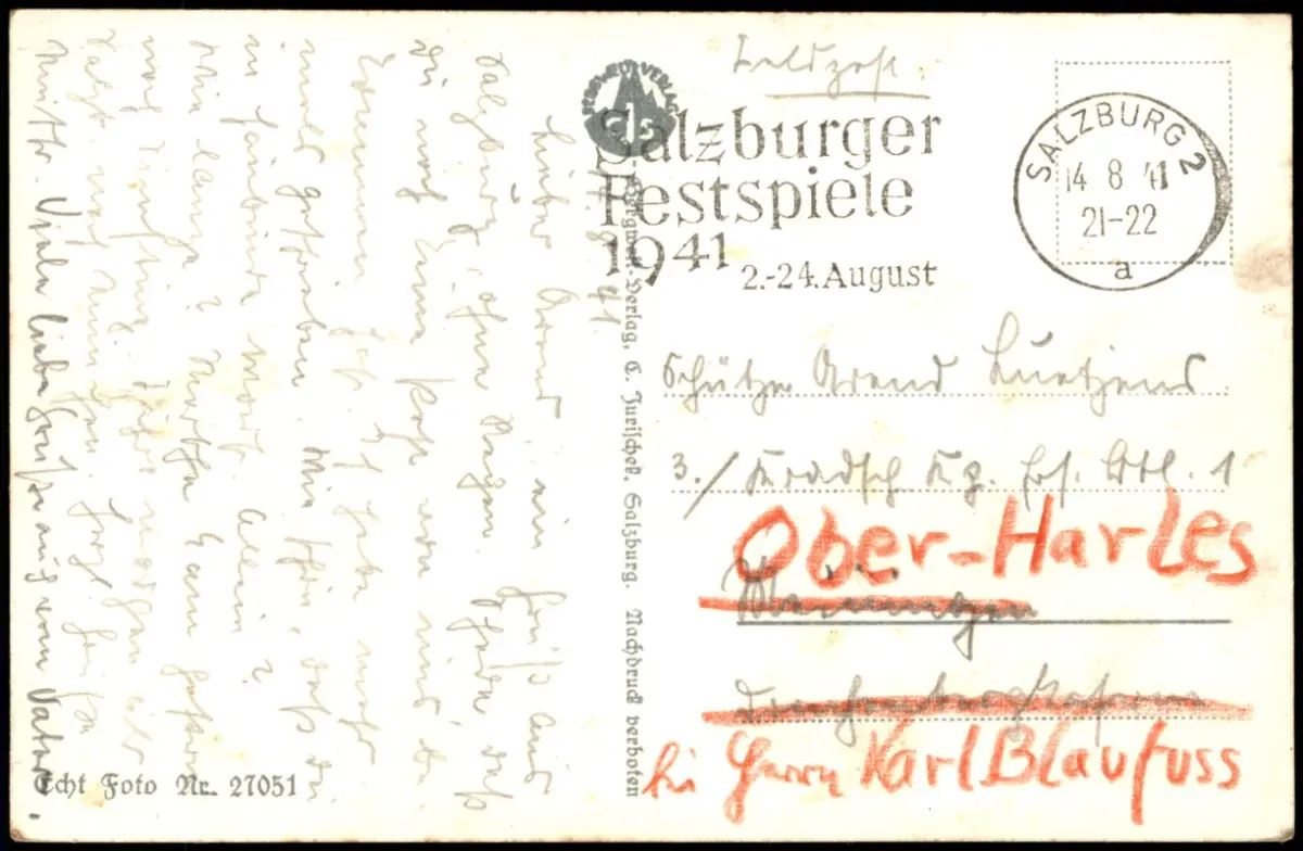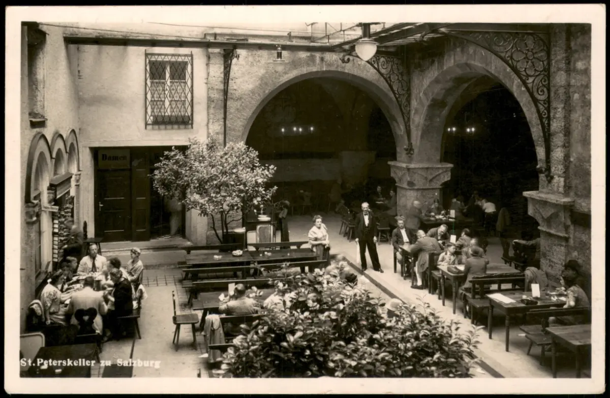 Ansichtskarte Salzburg Peterkeller - Innenhof 1941 Feldpoststempel WK2