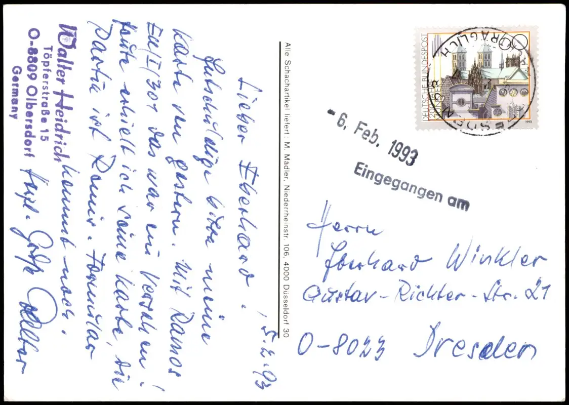 Ansichtskarte Schach Motivkarte (Chess) Mann schlägt mit Schachbrett zu 1993