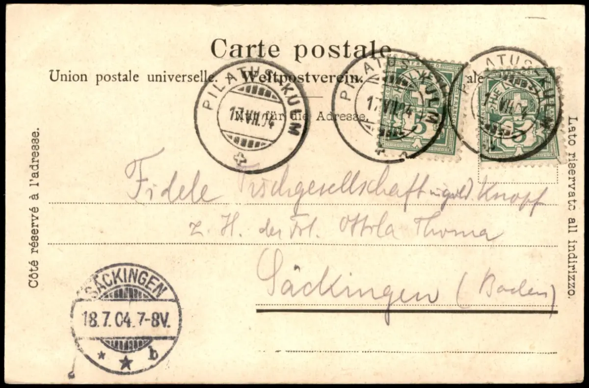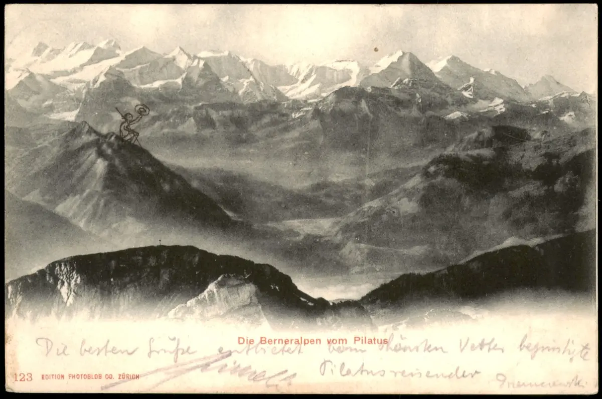 Ansichtskarte Schweiz Berneralpen vom Pilatus 1904 SÄCKINGEN Ankunftsstempel