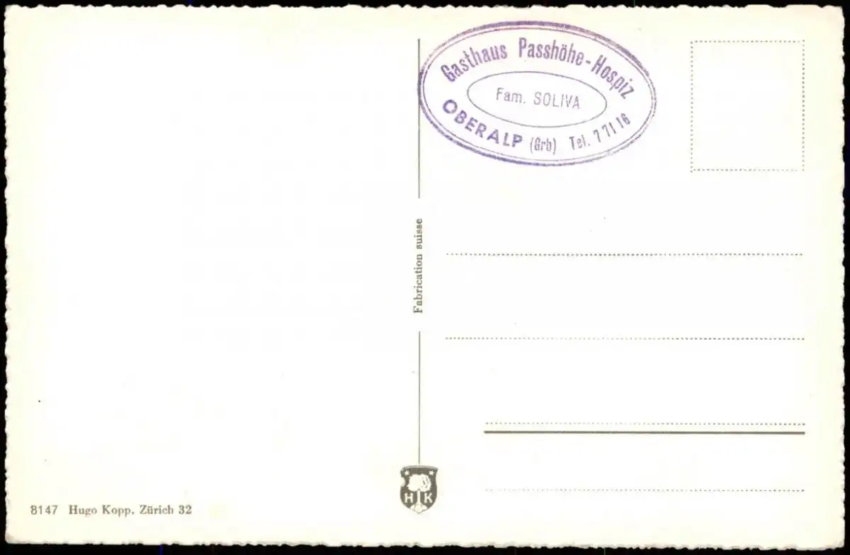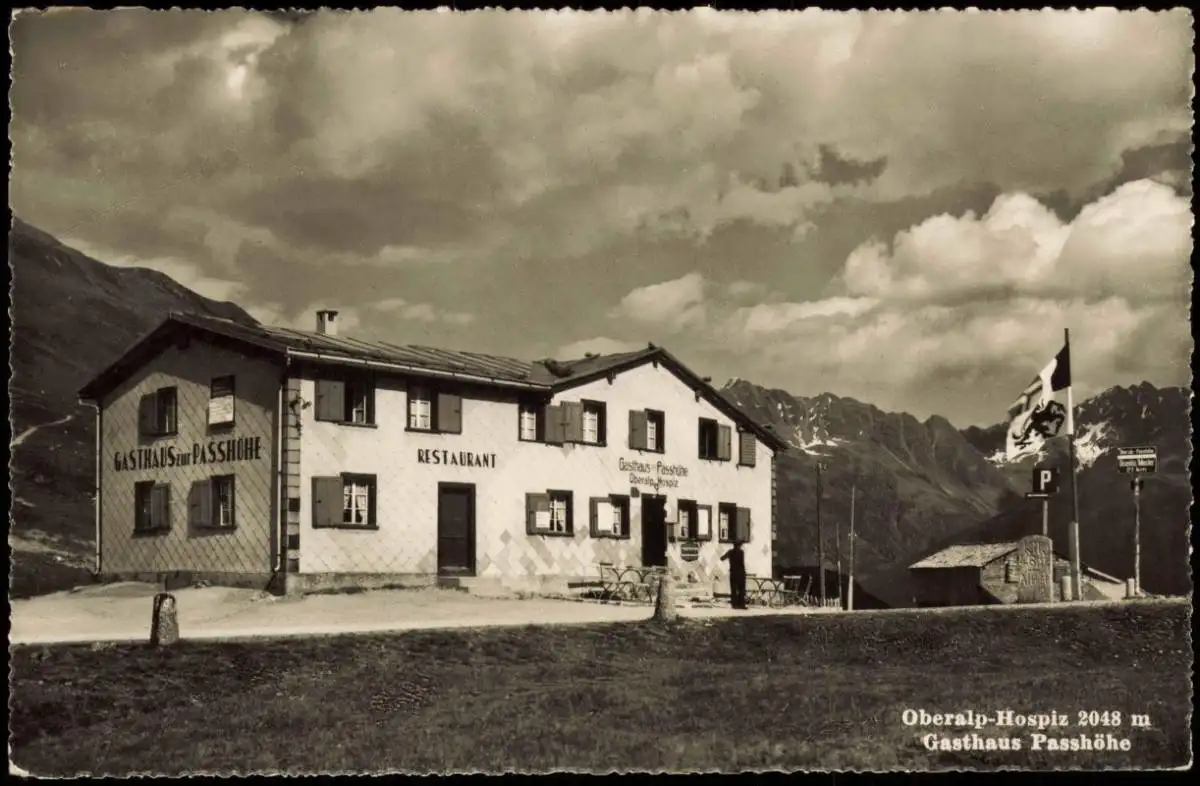 Ansichtskarte .Schweiz Gasthaus Passhöhe Oberalp-Hospiz 2048 m 1961