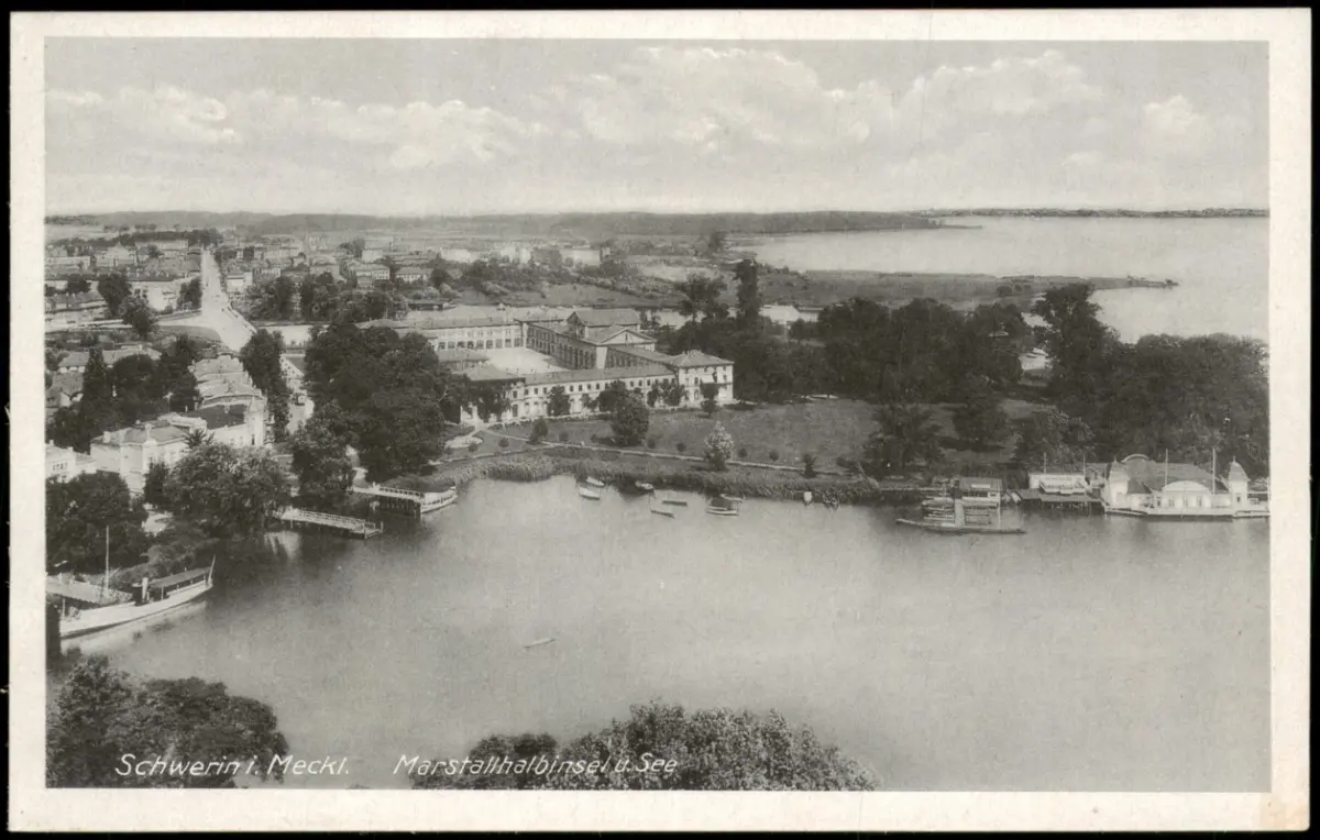 Ansichtskarte Schwerin Luftbild Marstallhalbinsel u. See 1938