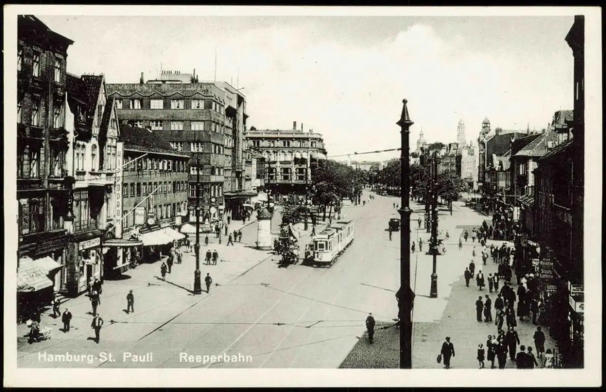 Ansichtskarte St. Pauli-Hamburg Reeperbahn Straßenbahn 1930