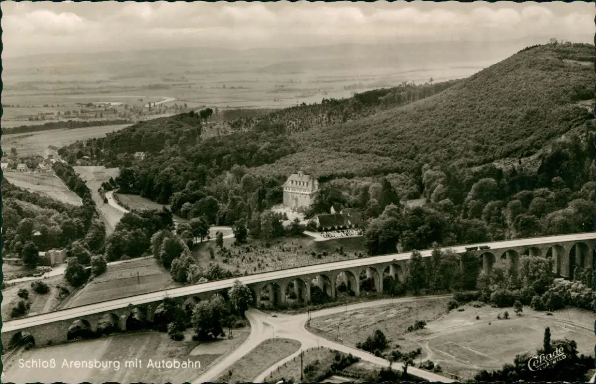 Ansichtskarte Steinbergen-Rinteln Luftbild Schloß Arensburg mit Autobahn 1961