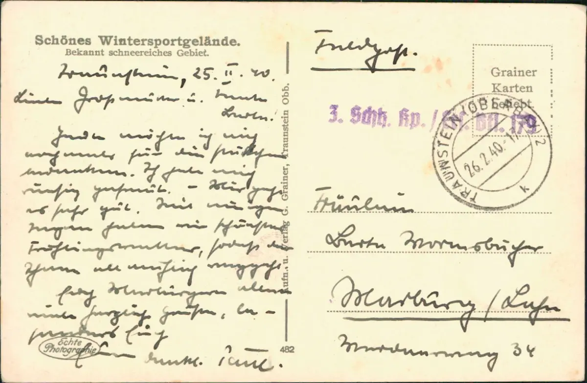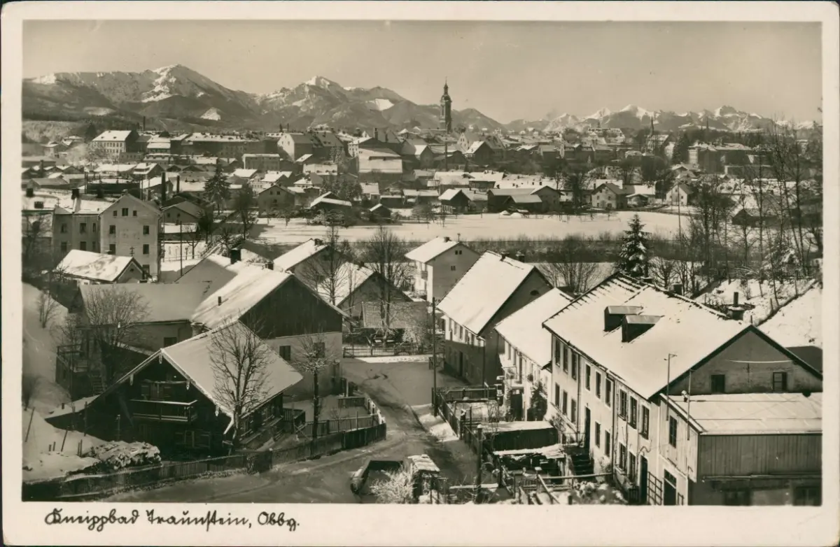 Ansichtskarte Traunstein Stadtpartie Winter 1940 gel. Feldpost WK2