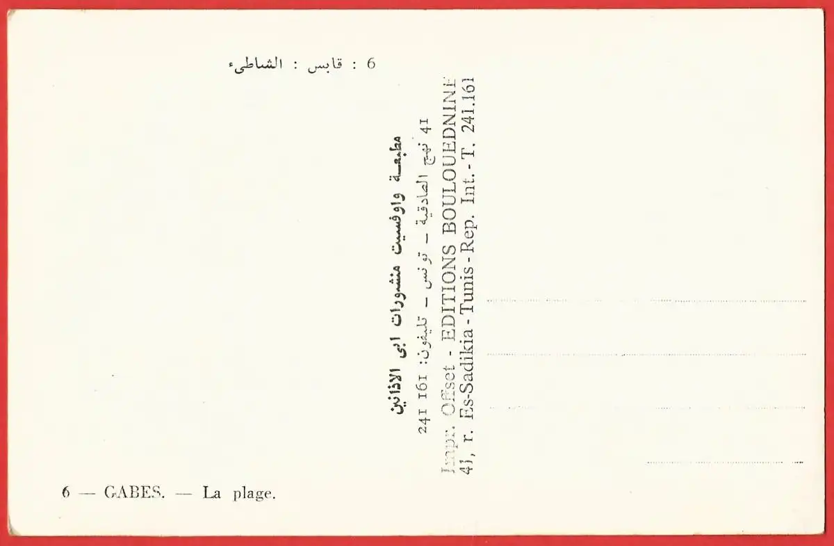 Motiv: Tunisie : La plage de Gabès. Verlagsangaben: Boulouedine, 6.