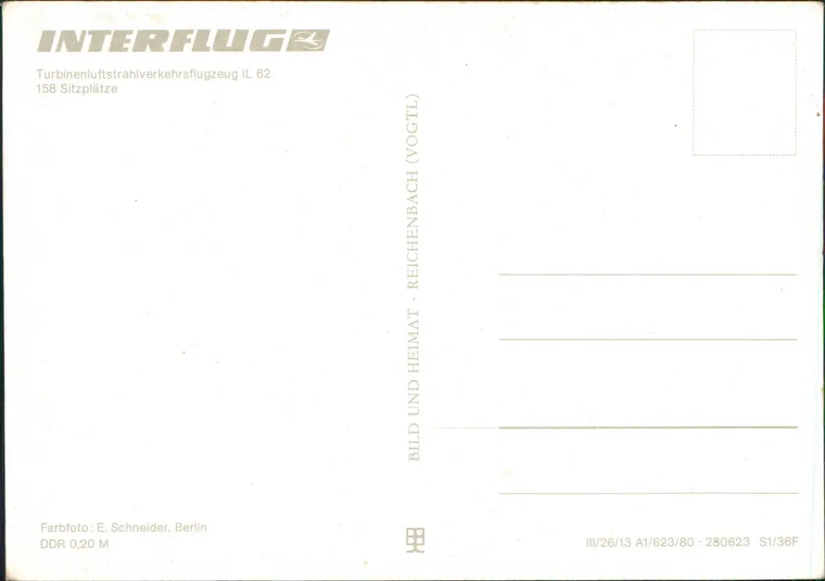 Ansichtskarte Turbinenluftstrahlverkehrsflugzeug IL 62 INTERFLUG 1980