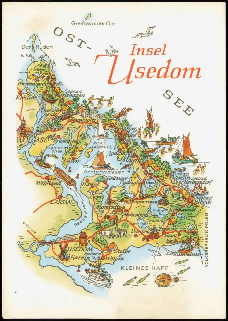Ansichtskarte Usedom Insel Usedom - Landkarte 1978