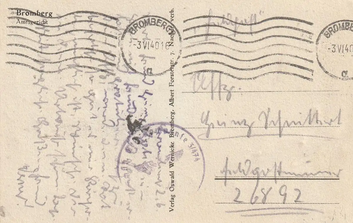 Titel: WESTPREUSSEN - BROMBERG / BYDGOSZCZ, Amtsgericht, 1940, deutsche Feldpost