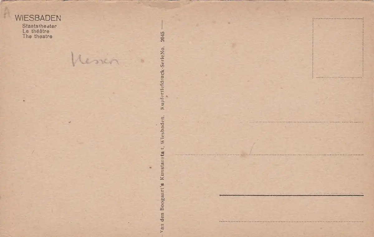 Verlagsangaben: Wiesbaden, van den Boogaerts, Kunstanstalt, Kupfertiefdruck-Serie No. 2045.