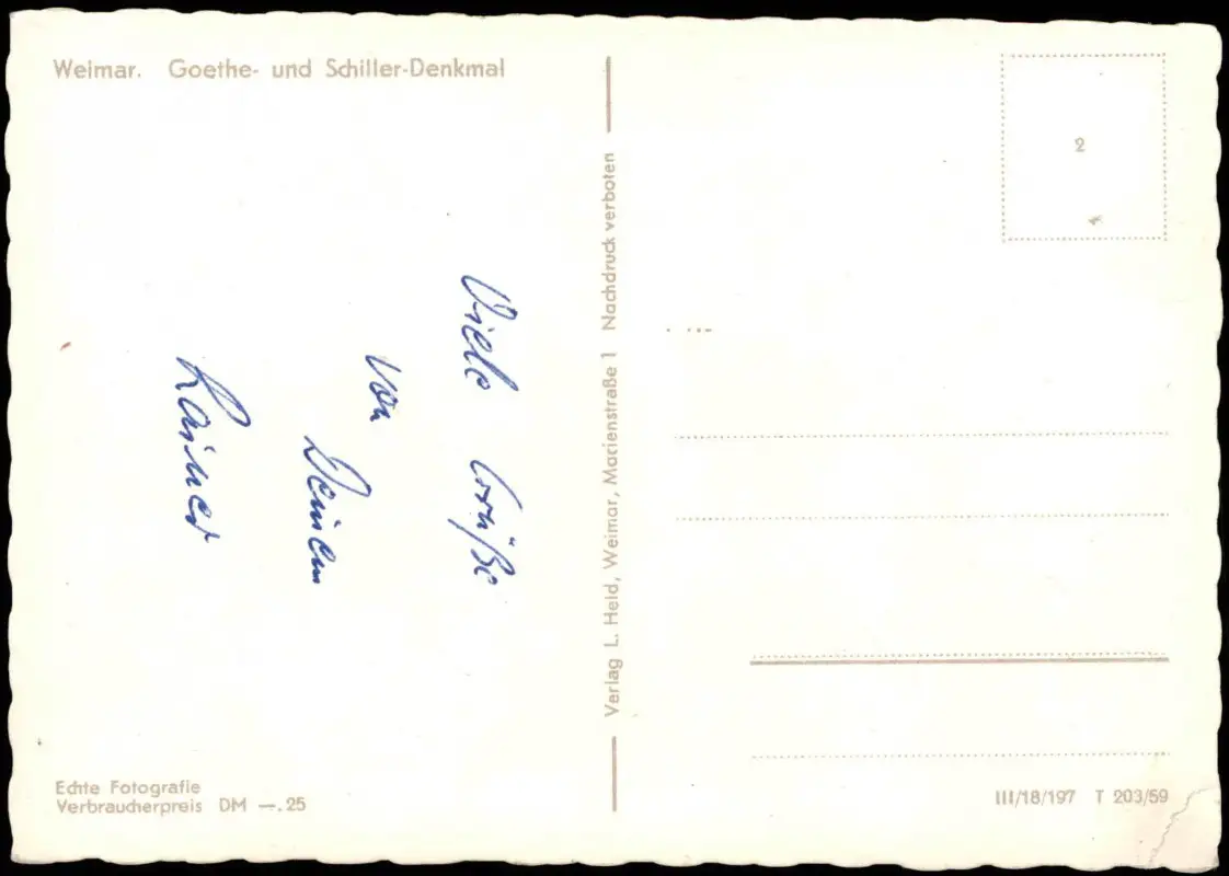 Ansichtskarte Weimar Goethe-Schiller-Denkmal 1959