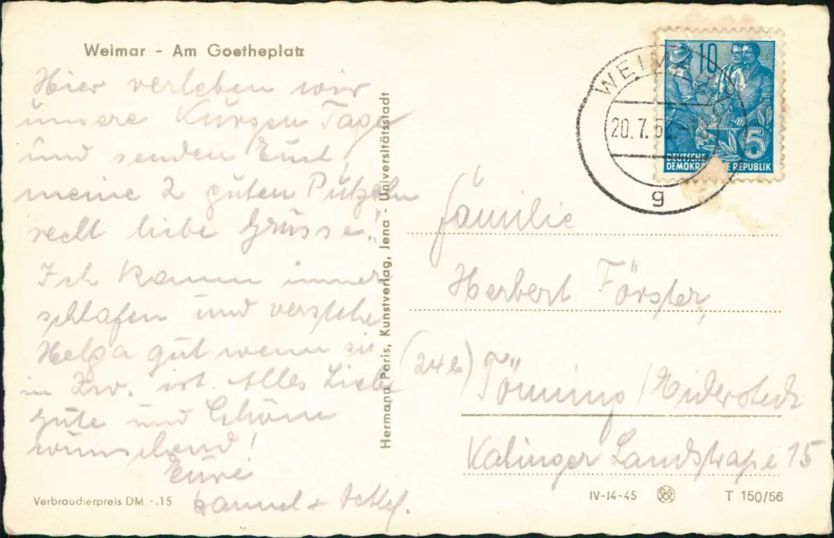 Ansichtskarte Weimar Goetheplatz, Bus - Fotokarte 1956