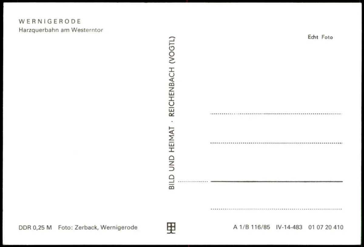 Ansichtskarte Wernigerode Harzquerbahn am Westerntor 1983
