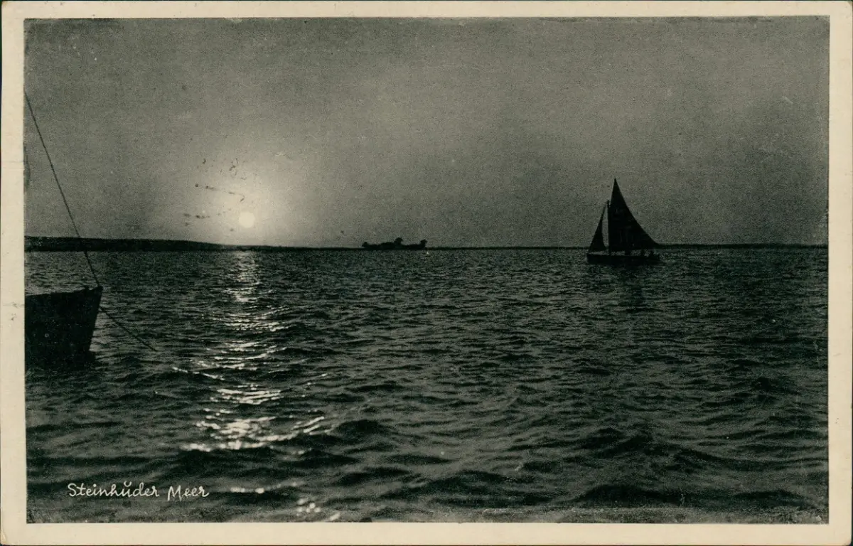Ansichtskarte Wunstorf Steinhuder Meer Segelboote Mondschein 1938