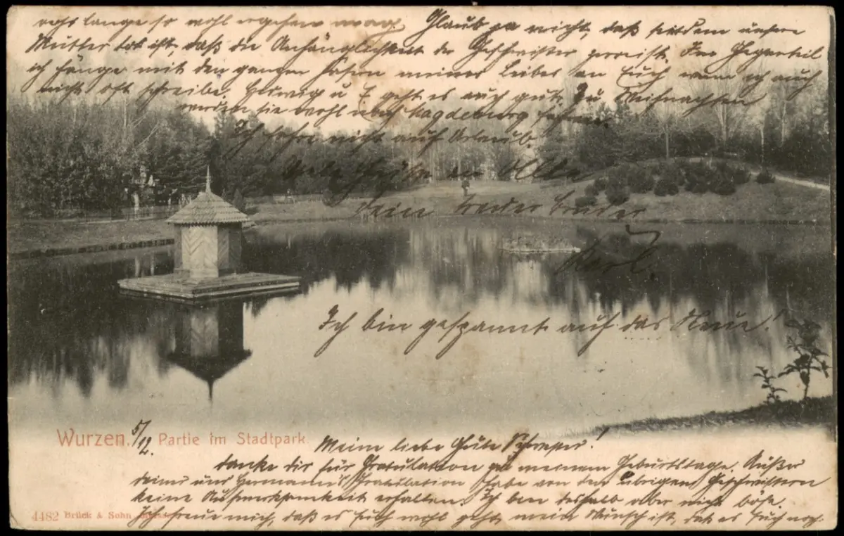 Ansichtskarte Wurzen Teich Weiher Partie im Stadtpark 1903