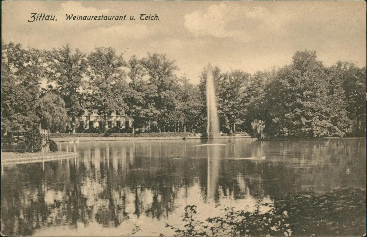 Ansichtskarte Zittau Weinaurestaurant u. Teich. 1907