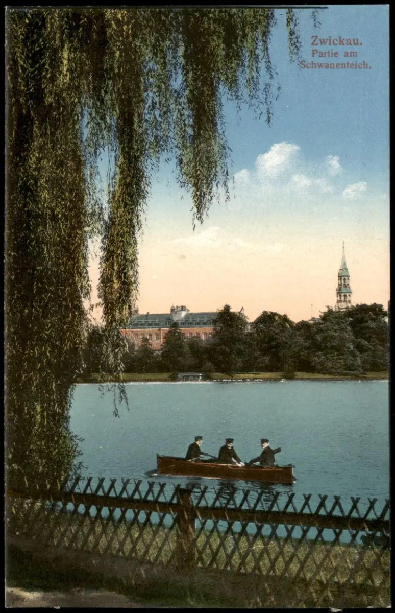 Ansichtskarte Zwickau Partie am Schwanenteich - Ruderer 1916
