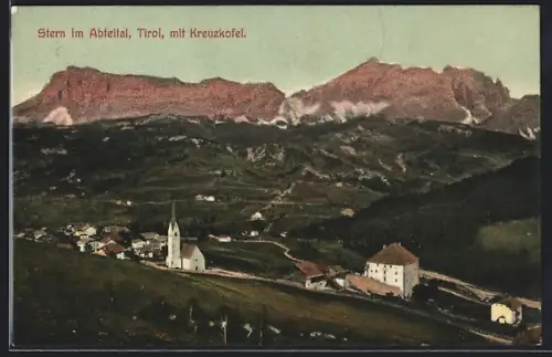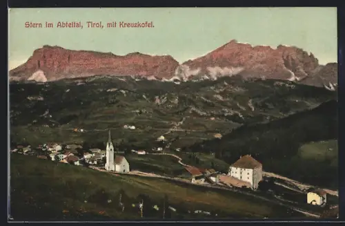 AK Stern im Abteital, Totalansicht mit Kreuzkofel aus der Vogelschau