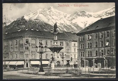 AK Innsbruck, Rudolfsbrunnen mit Bergpanorama