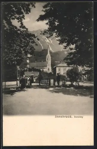 AK Innsbruck, An der Innbrücke, Rahmen, Trachtenbuben